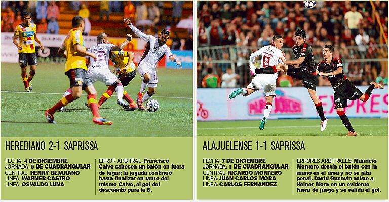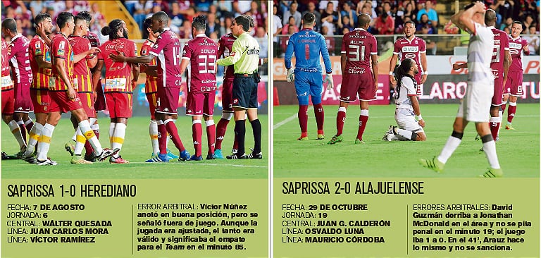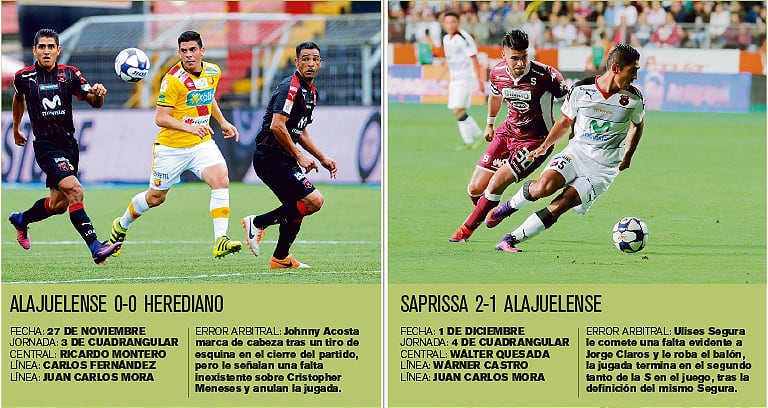Los errores arbitrales son el común denominador en el Torneo de Invierno 2016, pero en lo que respecta a los duelos entre Saprissa, Alajuelense y Herediano los morados son los más favorecidos por las fallas de los encargados de impartir justicia.