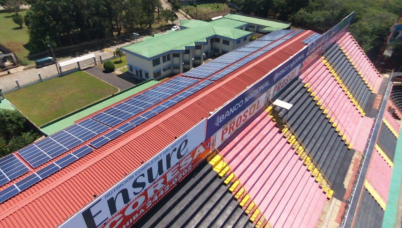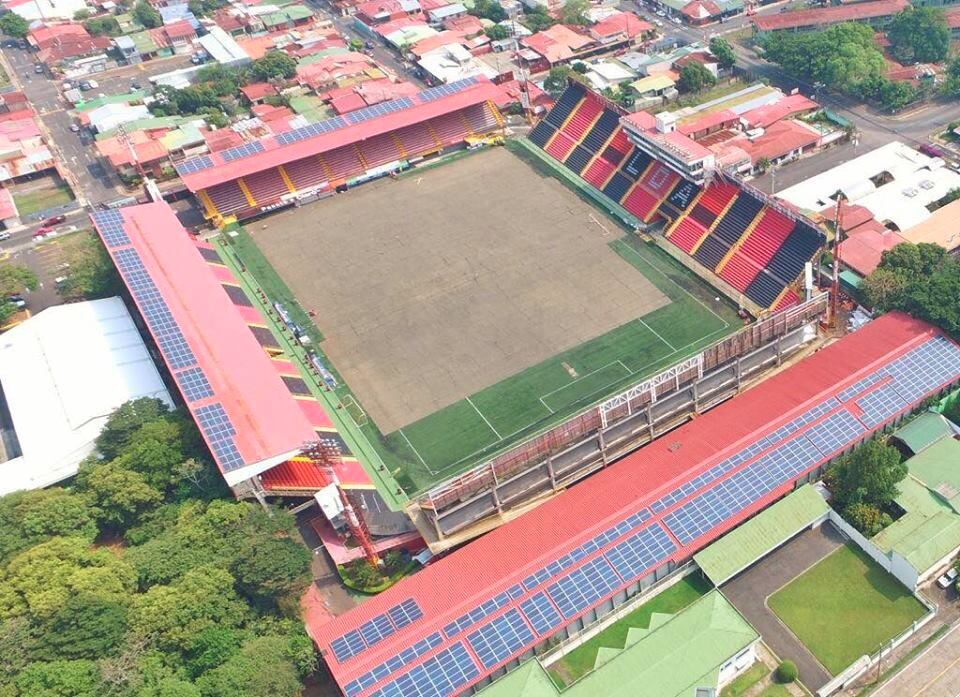 En 2015, el Estadio Alejandro Morera Soto pasó a ser el primer reducto de Centroamérica, México y el Caribe que se abastece al 100% con energía solar y produce 393,000 kWh por año, lo que equivale al consumo de 170 hogares.