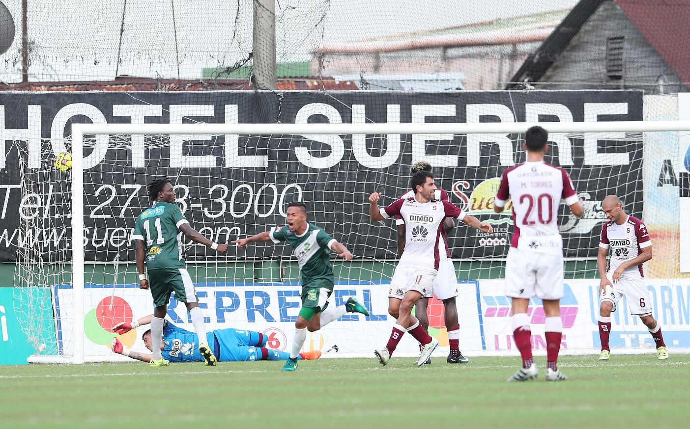 El árbitro Pedro Navarro pitó el final del juego. El resultado: Saprissa cayó goleado 5-1 en el intenso calor de Limón. Los jugadores brindaron entrevistas y entraron al camerino, donde se desahogaron por la paliza.