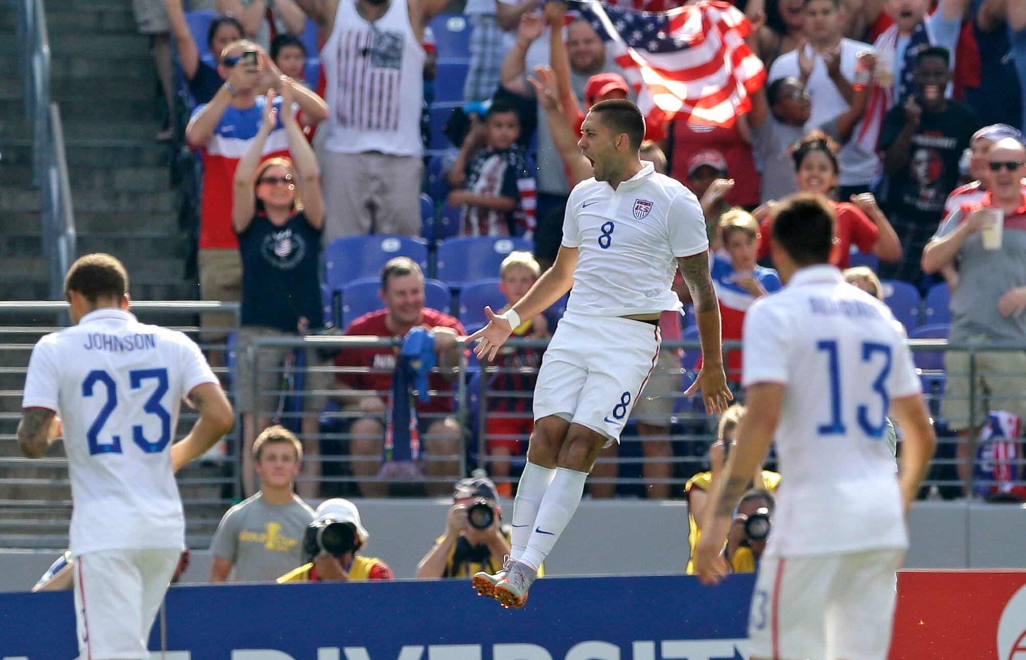 Clint Dempsey celebra una de las anotaciones de Estados Unidos ante Cuba en los cuartos de final de la Copa Oro. (AP)