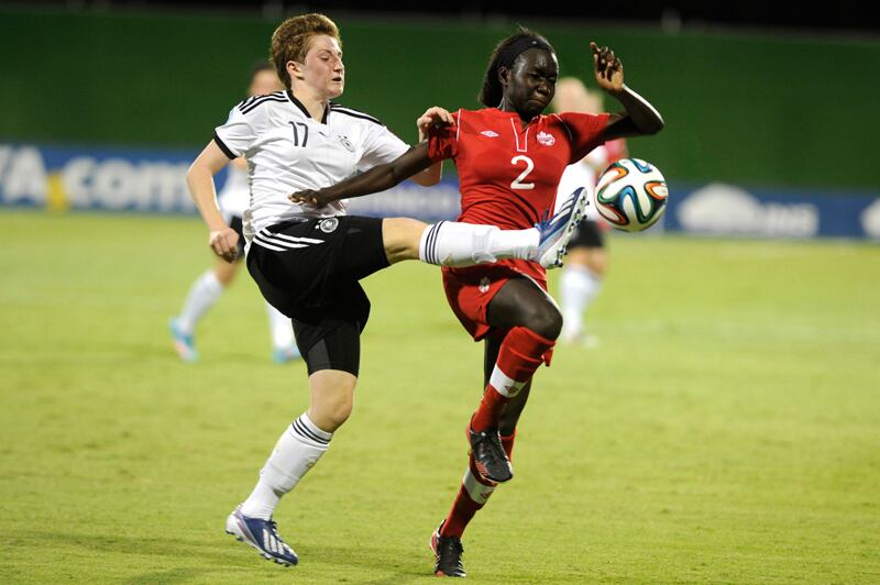 3.850 personas vieron a Lily Niber de Ghana (14) ante Hui Jong Ri de Corea del Norte en el estadio Edgardo Baltodano de Liberia, el sábado. El público fue punto alto del Mundial. | RAFAEL MURILLO (Rafael Murillo Rodriguez )