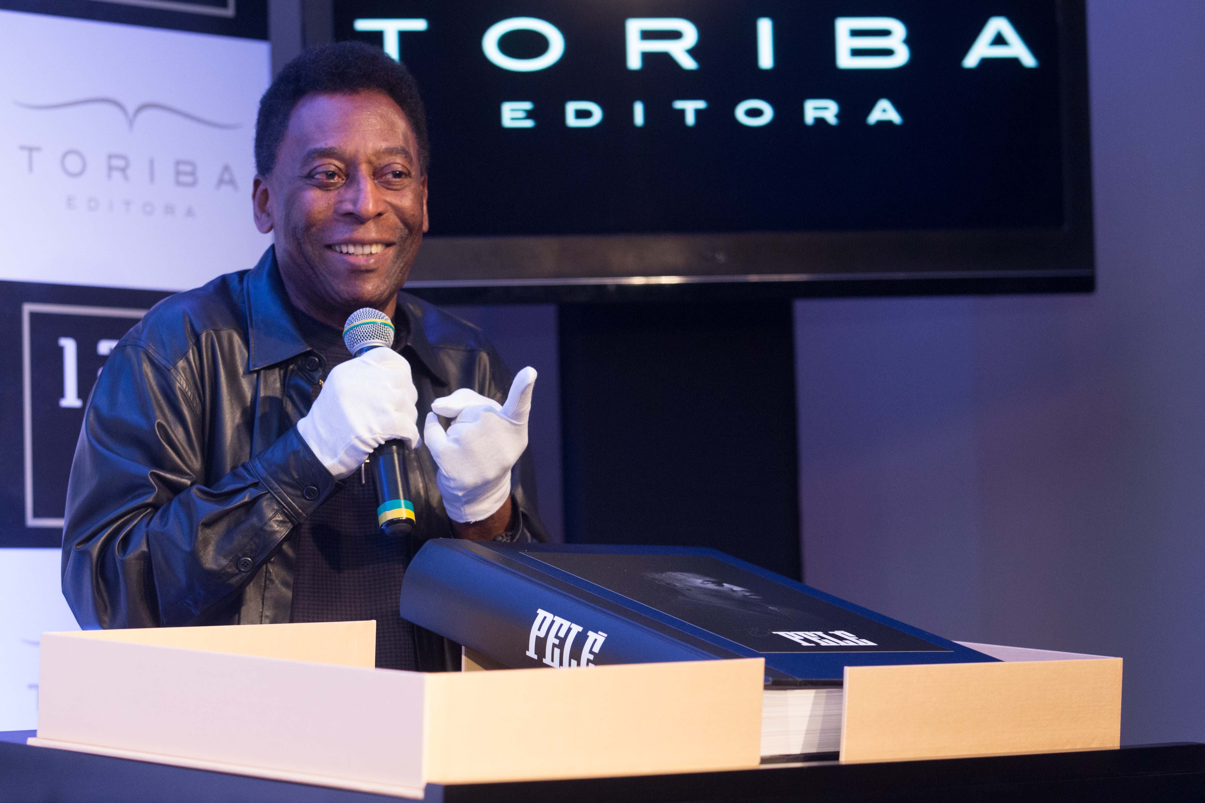 Con lágrimas de emoción el "rey" Pelé presentó el libro, una pesada edición de unos 15 kilos que recorre la carrera del tres veces campeón mundial.