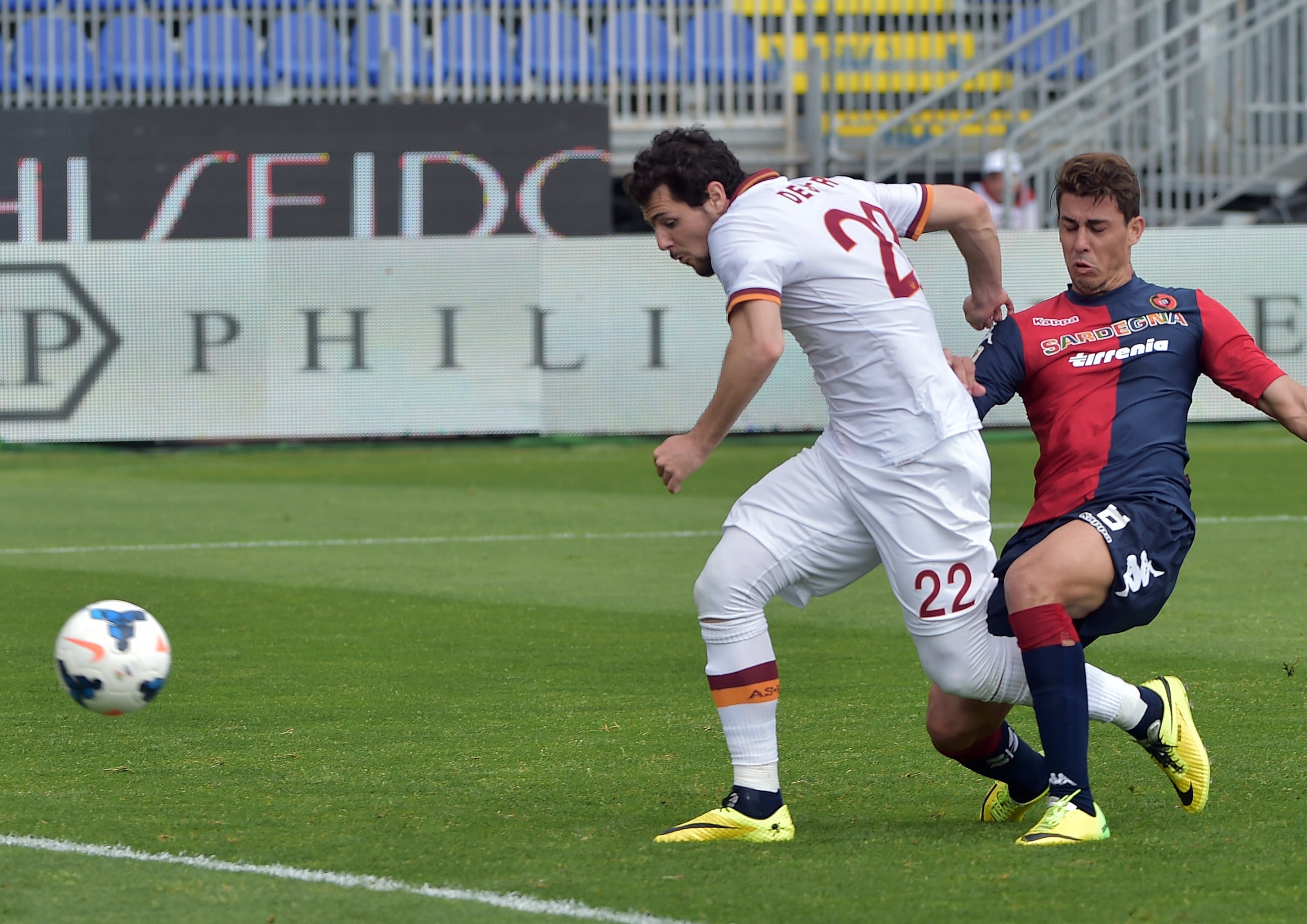 La Roma ganó 3-1 en terreno del Cagliari, con un triplete de Mattia Destro, y se situó a cinco puntos del líder Juventus, que el lunes recibe en su estadio al Livorno.