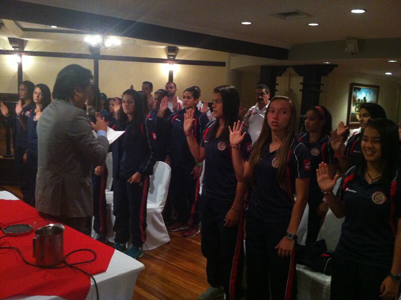 Belén. La Selección Femenina Sub-17 de Costa Rica se juramentó ayer en un acto en que las palabras de aliento y motivación volaron de un lado a otro del Salón Curime del Hotel Double Tree, en Belén.