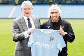 Carlos Tevez hará dupla con el brasileño Robinho en el ataque del Manchester City. | AP (Martin Rickett)