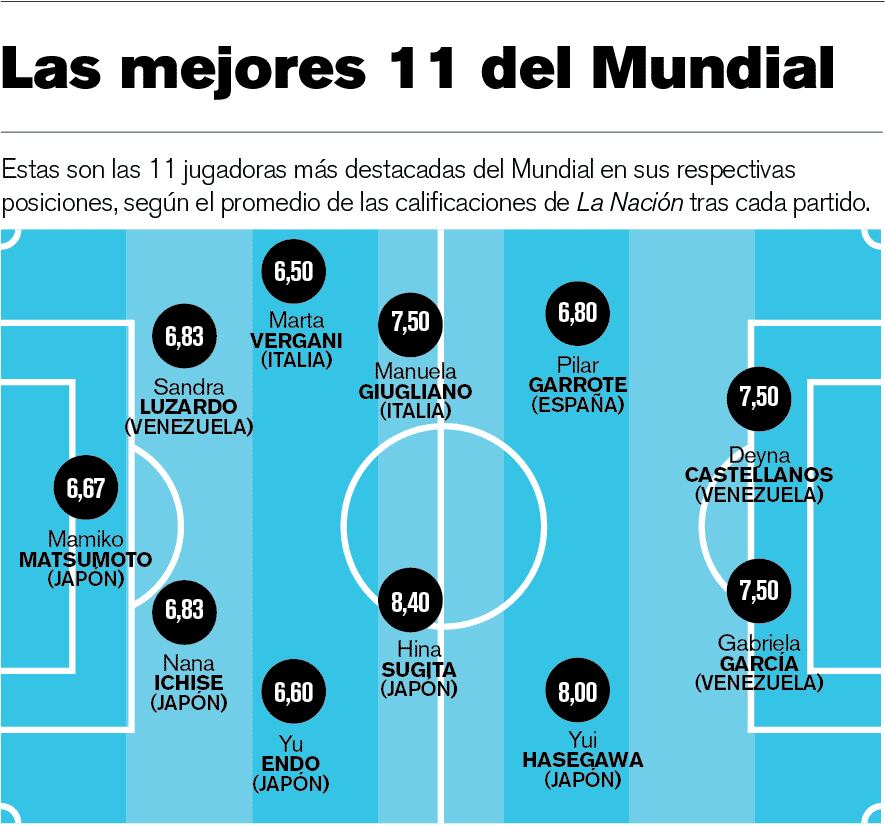 La mejor de todas fue Sugita, quien promedió 8,40. También fue la más destacada según FIFA, que le dio el premio al Balón de Oro.