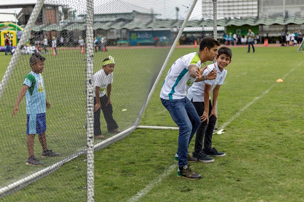 Christian Gamboa compartió ayer con niños indígenas y estudiantes del colegio Humboldt, en Pavas. El tico debe integrarse a su equipo en la segunda semana de julio. (Jorge Arce)