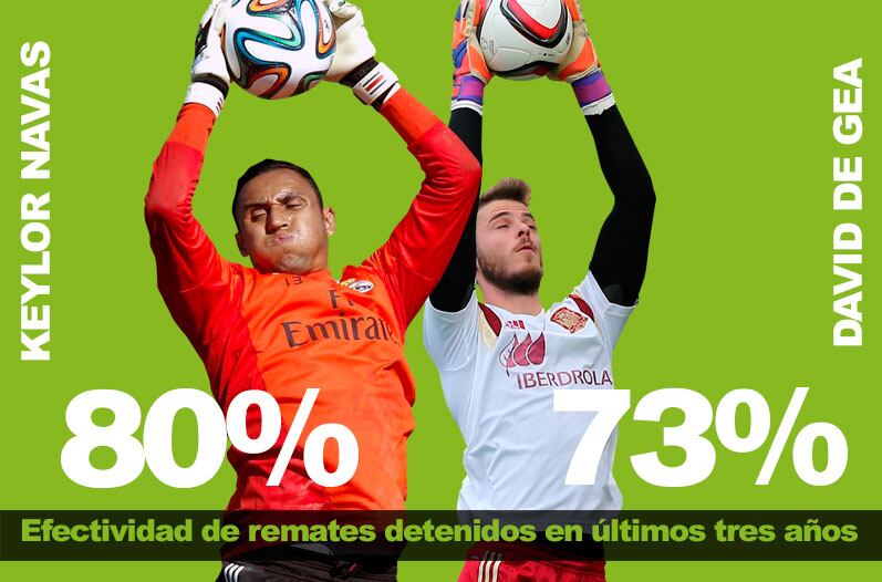 La efectividad de atajadas del guardavallas Keylor Navas en las últimas tres temporadas es mayor a la de David de Gea.