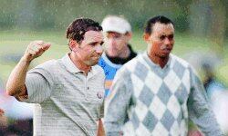 En contraste, Tiger Woods acabó el día con una victoria, una derrota y rostro severo.