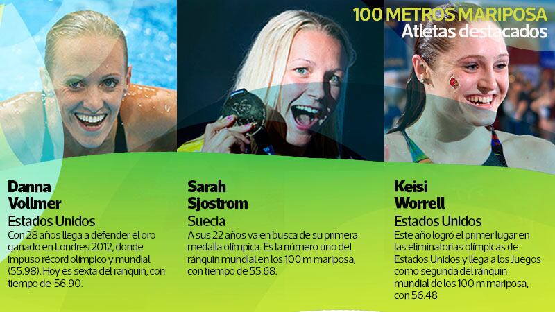 En el evento de los 100 metros mariposa en el Estadio Olímpico Acuático, ella actuará en el segundo heat y le tocará el carril 3.