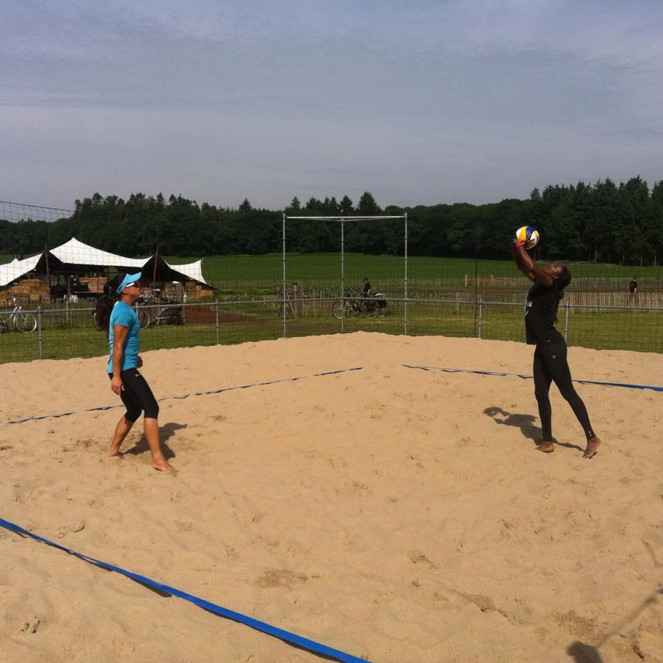 Natalia Alfaro y Karen Cope calentaron ayer poco antes de medirse a Estados Unidos, favorito del Mundial, en un entrenamiento en las canchas que se ubican en el hotel Van Der Valk, en Cantharel. (Cortesía de Natalia Alfaro)