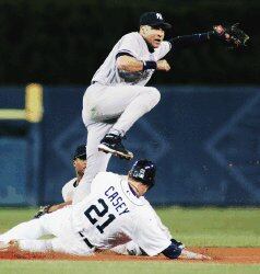 Detroit anotó tres carreras en la segunda entrada ante el abridor de los Yanquis, Randy Johnson, y añadió otras dos en la sexta.