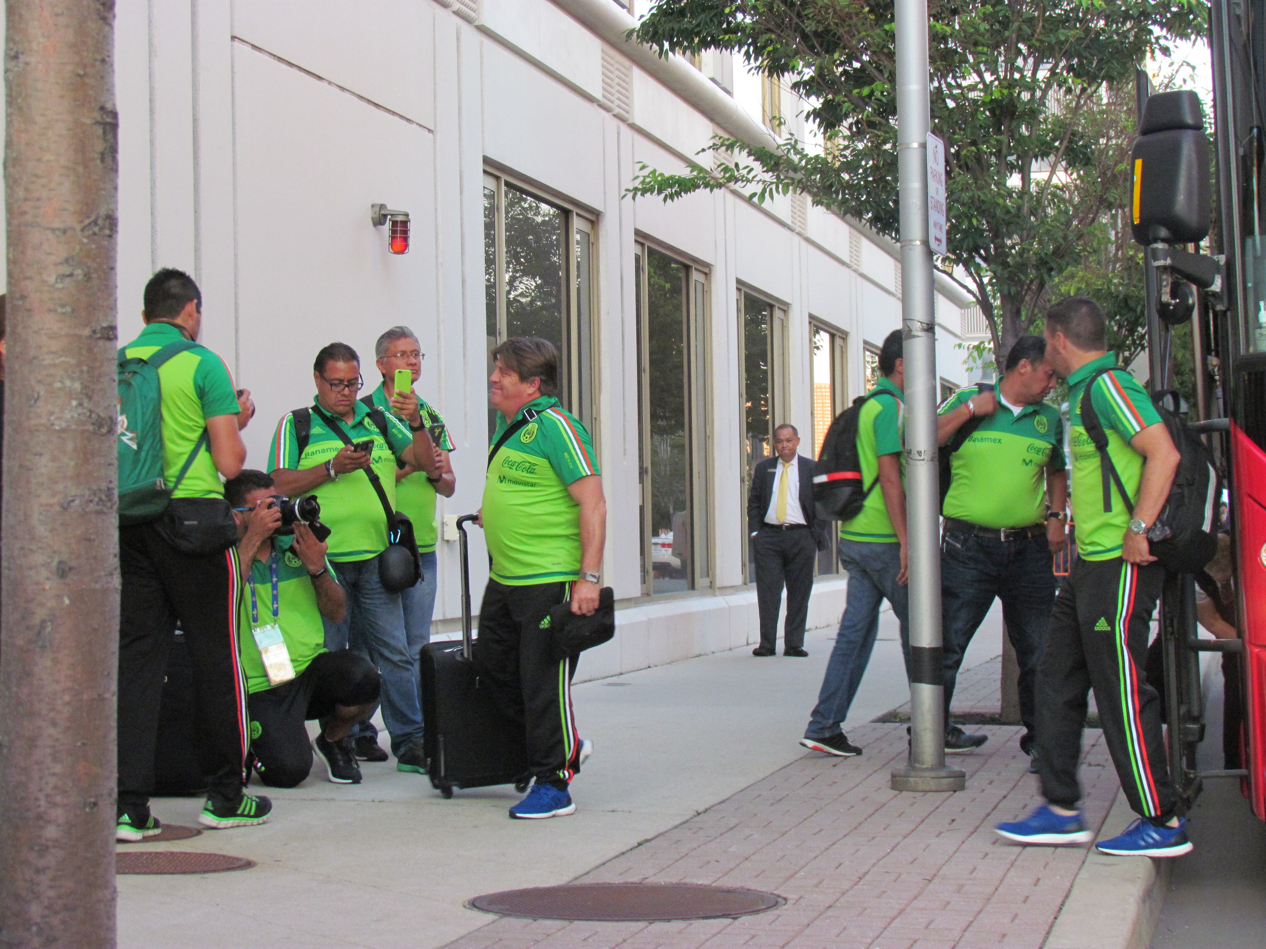 El primero en bajar del transporte fue el entrenador Miguel Herrera, quien apuró el paso y no saludó. Los únicos futbolistas que levantaron su mano fueron Javier Hernández, Jonathan dos Santos y Giovanni dos Santos.