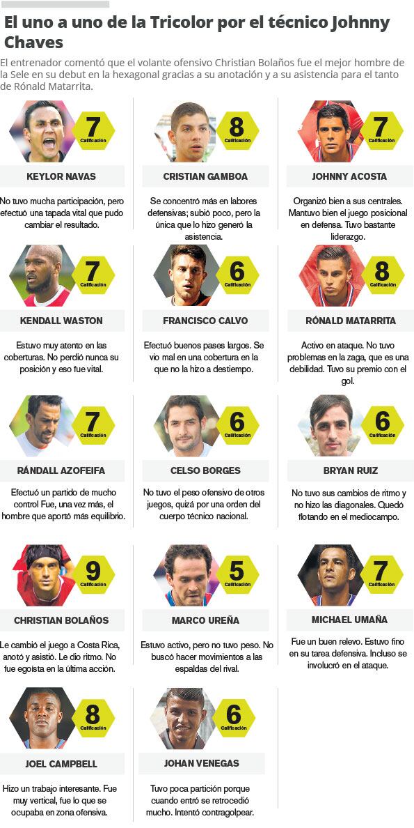 El timonel nacional, Johnny Chaves, le dio una calificación a cada uno de los futbolistas de la Mayor, por su actuación ante los isleños.
