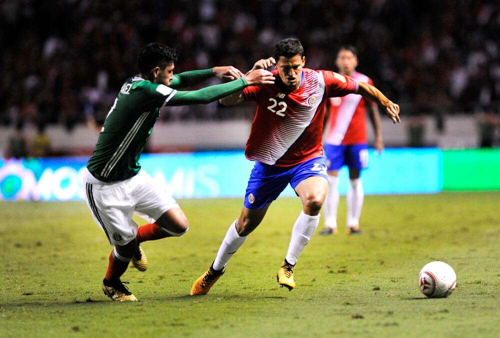 Daniel Colindres jugó su primer partido de la hexagonal rumbo a Rusia 2018. En la acción, presiona al mexicano Carlos Vela. | RAFAEL PACHECO (Rafael Murillo)