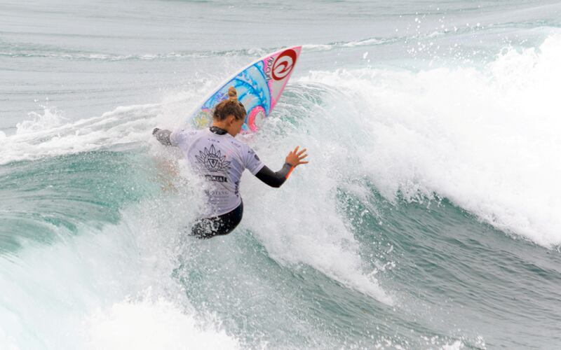 La surfista Leilani McGonagle es la única costarricense que sigue con vida en el Mundial Junior que se corre en las olas de Oceanside, California.