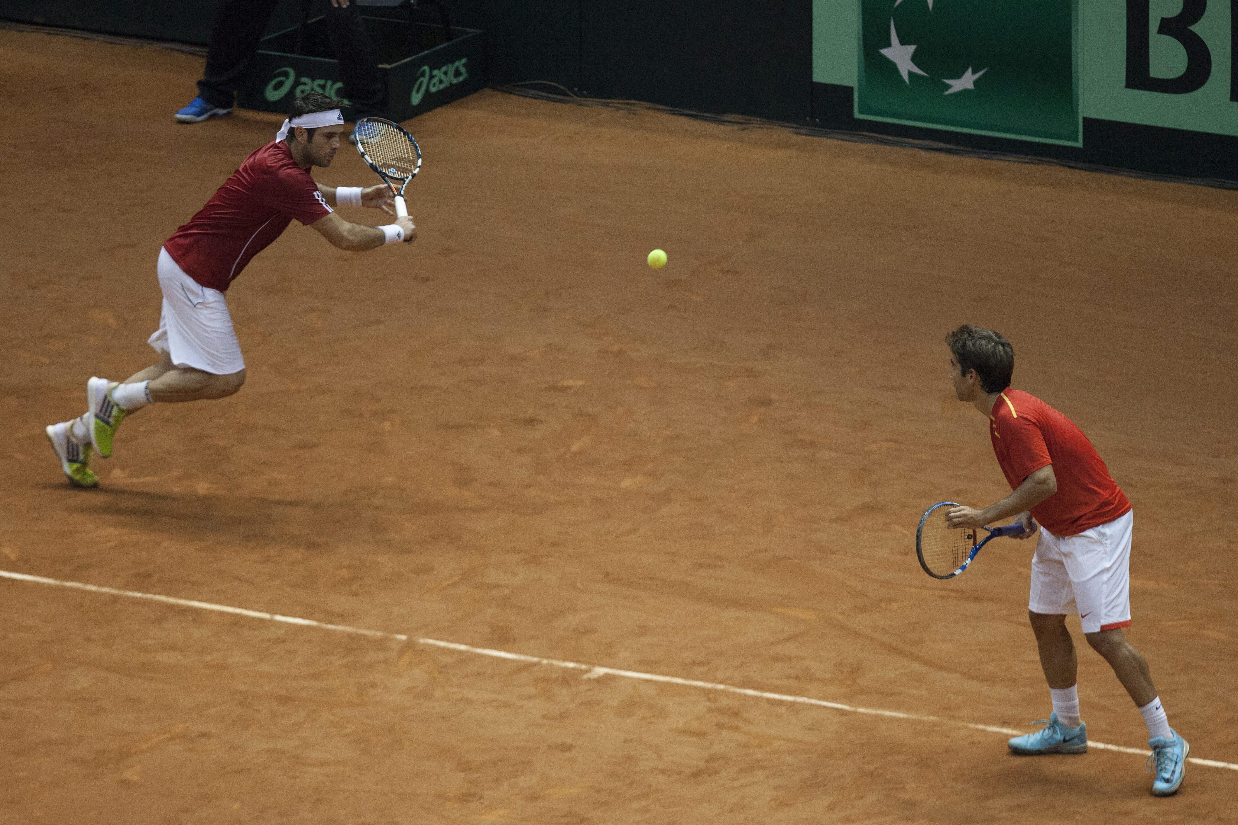 La caída de la pareja formada por Marc López y David Marrero ante Bruno Soares y Marcelo Melo dejó a España por detrás en la eliminatoria y a un solo punto de descender del Grupo Mundial, donde ha competido ininterrumpidamente desde 1997 logrando cinco Ensaladeras de Plata y dos segundos puestos.