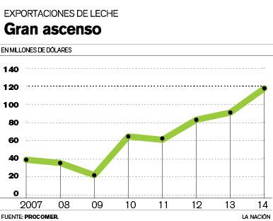 Las exportaciones del sector lechero aumentaron 83% en los últimos cuatro años, al pasar de colocar $64 millones en el 2010, a $117 millones en el 2014.