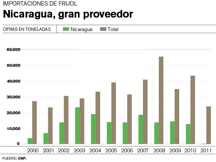 La escasez afectaría especialmente el frijol rojo. El año pasado, Nicaragua aportó un 99% de las importaciones de ese color y un 50% del total importado.