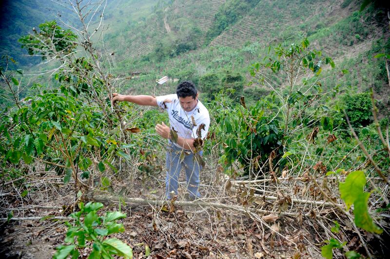 A Marvin Quirós Solís le preocupa perder sus tres hectáreas sembradas de café en San Jerónimo de San Pedro, Pérez Zeledón, afectadas por la roya, pues para salvarlas necesita la ayuda estatal que espera desde hace tres semanas.