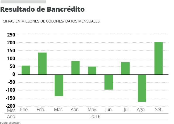 Este año, Bancrédito reportó pérdidas mensuales en tres ocasiones. Pero en setiembre las ganancias se recuperaron y la utilidad mensual ascendió a ¢221 millones, según el reporte entregado a Sugef.