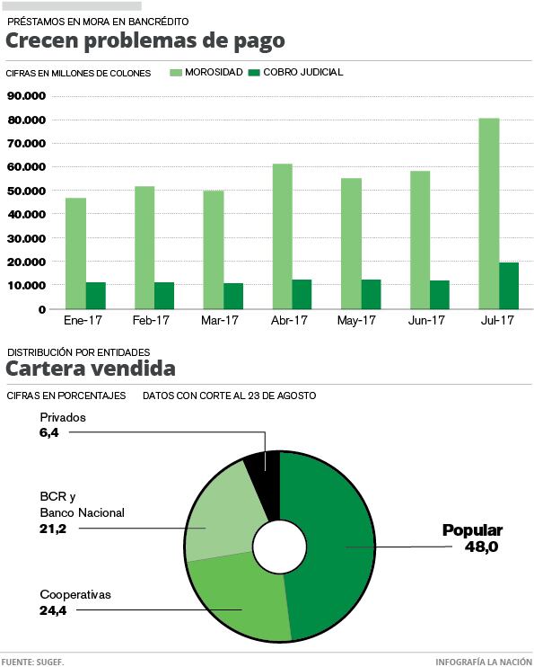 El caso de las operaciones en cobro judicial fue más drástico. El saldo de estos créditos ascendió a ¢19.104 millones en julio anterior, lo cual significó un alza del 62% frente al saldo de ¢11.803 millones en junio.