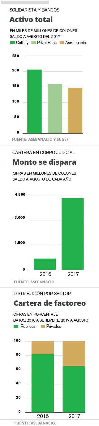 La expansión se concentró en el descuento de facturas a empresas privadas, pues de representar el 18% del negocio, en setiembre del año pasado, pasó a ser el 35% en agosto anterior, con un monto de ¢6.645 millones.