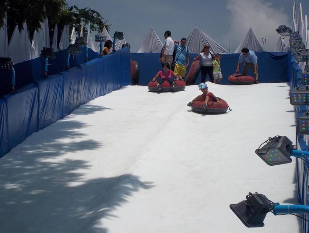 Este concepto es desarrollado por Total Snow Productions, e incluye una rampa de nieve de 42 metros de largo y más de 10 metros de altura. También cuenta con un espacio para competencias con bolas de nieve y para crear muñecos, especificó Iván Liceaga, de la empresa LoveBrand, representante de esta nueva franquicia en el país.