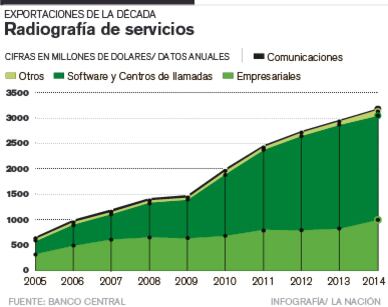 Las ventas al extranjero de los centros de llamadas y las compañías de software fueron de $2.044 millones, en el 2014, prácticamente la misma cantidad reportada un año antes.