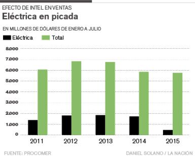 Los datos indican que la participación de ese sector en el valor total de las exportaciones de Costa Rica disminuyó de un 25% entre enero y julio del año pasado a apenas un 8% en los primeros siete meses del 2015.