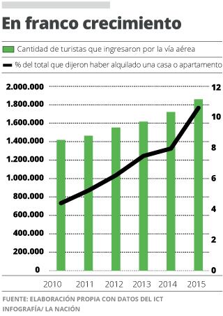 En 2015, un 11% de los viajeros que llegaron por vía aérea rentaron una casa