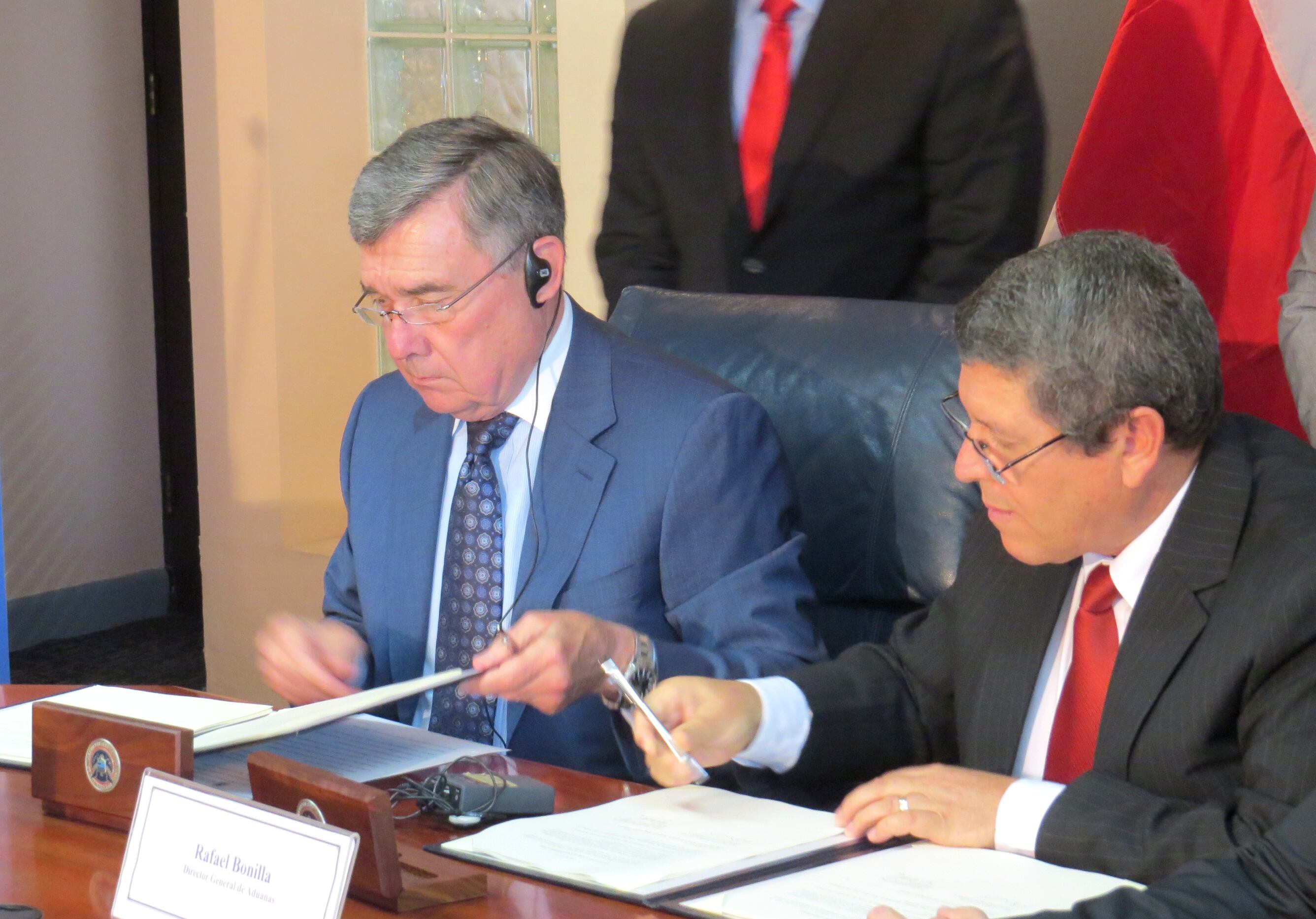 La firma estuvo a cargo del comisionado para Aduanas y Seguridad Fronteriza de Estados Unidos, Gil Kerlikowske, y el director general de Aduanas de Costa Rica, Rafael Bonilla.