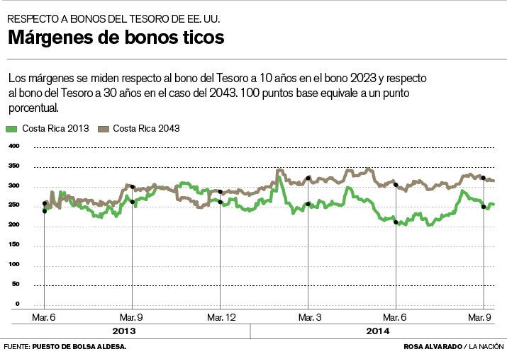 Desde junio pasado, ha subido el porcentaje adicional de rendimiento que los ahorrantes foráneos exigen a los títulos valores del Gobierno costarricense respecto a los bonos del Tesoro de Estados Unidos (la llamada prima por riesgo o margen).