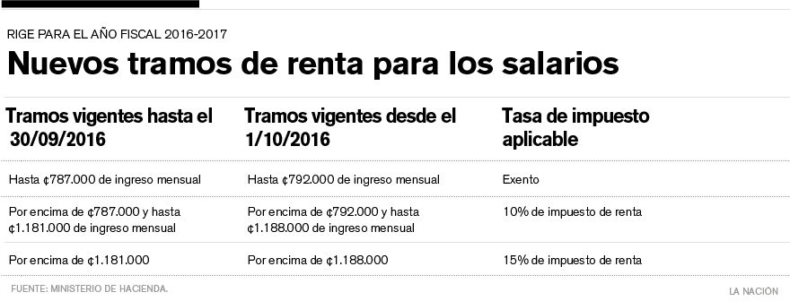 El ajuste en los tramos se aplica a sueldos, sobresueldos, salarios, premios, bonificaciones, gratificaciones, comisiones, pagos por horas extraordinarias, regalías, dietas y participaciones, así como a las jubilaciones y pensiones de cualquier régimen, y empezará a regir a partir del 1.° de octubre de 2016.