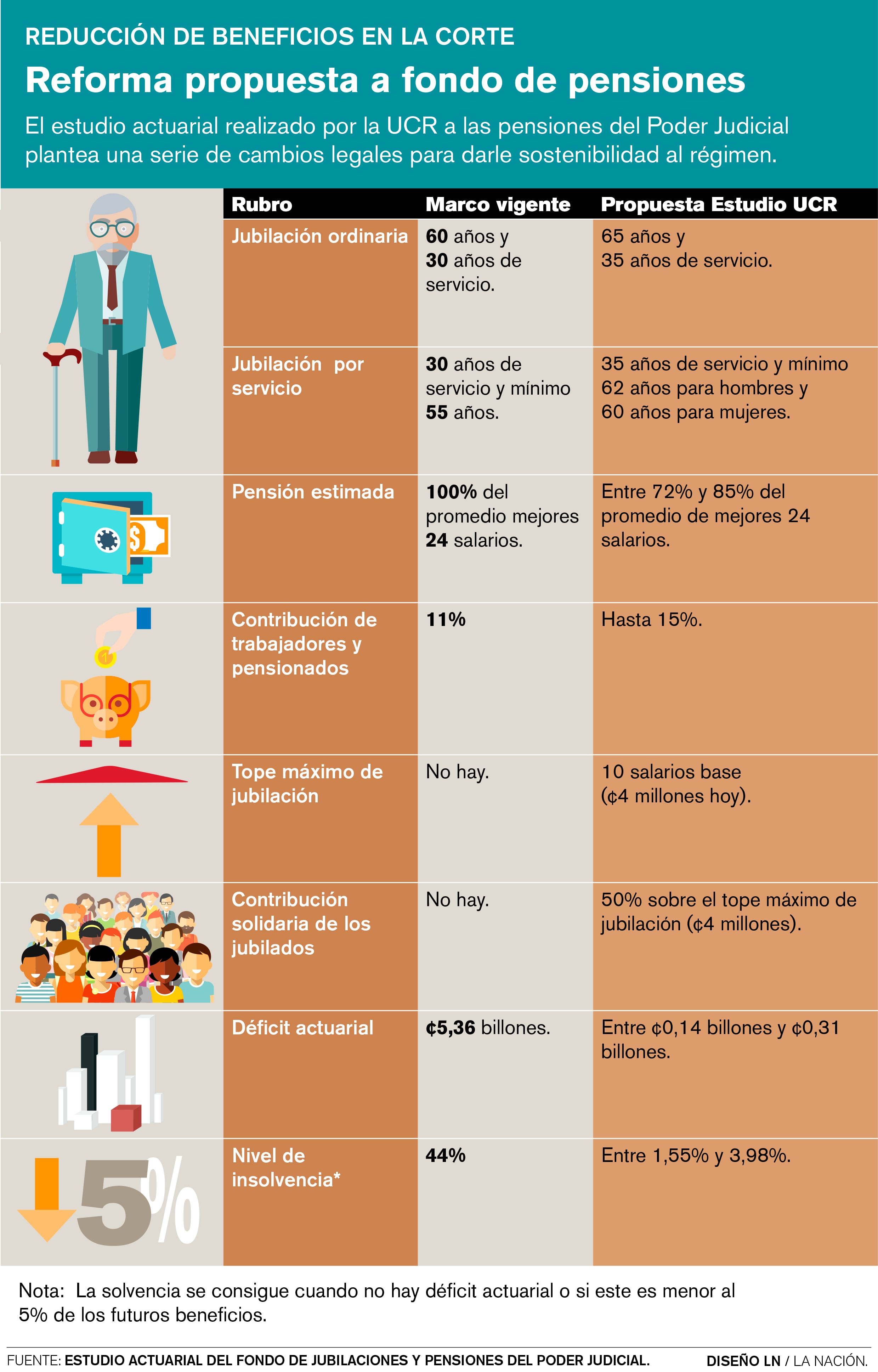 El estudio actuarial a las pensiones del Poder Judicial, elaborado por la Universidad de Costa Rica (UCR), propone un drástico recorte en los actuales beneficios de este régimen de jubilación.