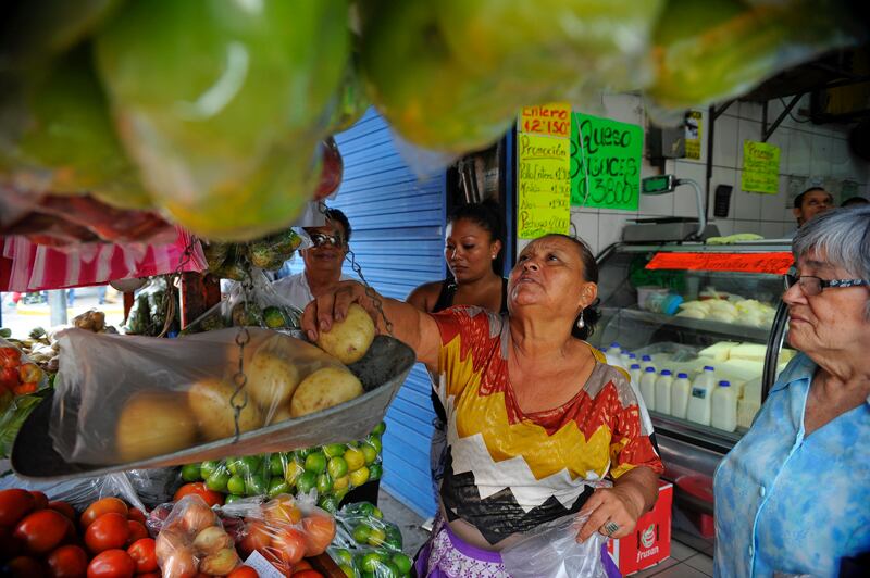 Leda Vargas Pérez, de 61 años, tiene un puesto de frutas y verduras cerca del costado noroeste del Mercado Central, donde trabaja desde que tenía 6 años. El negocio le permitió criar a sus hijos. En el sector informal laboran unas 927.000 personas, según el INEC. | MAYELA LÓPEZ/ARCHIVO (Mayela López)