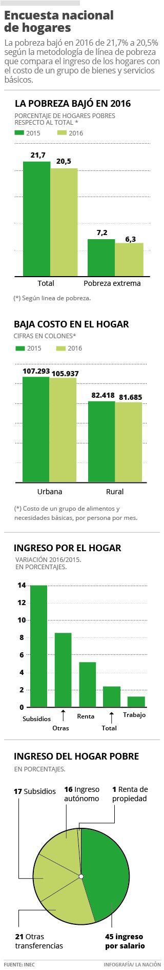 Las causas. Los ingresos de los hogares que provienen de ayudas estatales, lo que incluye becas, pensiones del régimen no contributivo y contribuciones del Instituto Mixto de Ayuda Social (IMAS), crecieron en el 2016 un 14% para el total de hogares y representaron un 17% de las entradas de los pobres.