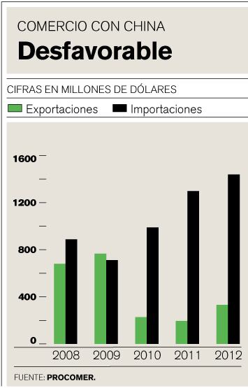 En el 2009, las empresas ubicadas en Costa Rica vendieron $767 millones en productos al gigante asiático. El valor cayó a $228 millones en el 2010 y descendió hasta los $195 millones en el 2011.