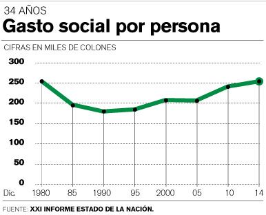 Fue en el 2014 que Costa Rica volvió a alcanzar un monto real de inversión social de ¢254.000 por persona (excluye las variaciones por inflación).