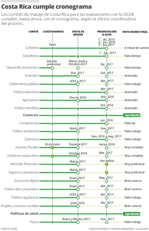 El ministro Mora y la oficina coordinadora del proceso en el Comex estiman que hasta hoy el cronograma marcha como se había previsto en la hoja de ruta establecida entre la OCDE y Costa Rica.