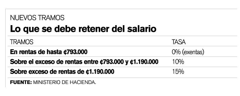 El impuesto es de un 10% y se aplica sobre el monto del salario mensual que supera los ¢793.000. Quien recibe un ingreso igual o menor a esa suma, no debe pagar el tributo.