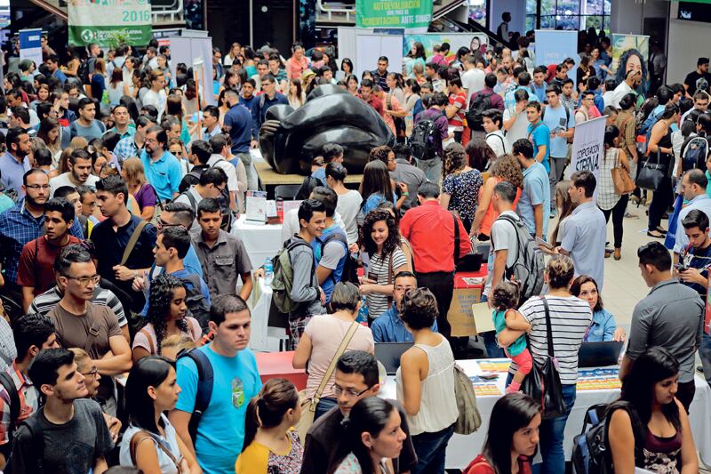 Asistentes a la feria de empleo organizada, la semana pasada, por la Universidad Latina. Según la Encuesta Continua de Empleo del Instituto Nacional de Estadística y Censos, el 72% de las personas que buscan trabajo son jóvenes entre 15 y 34 años. Al IV trimestre del 2015, 215.000 habitantes buscaban un puesto vacante. | JEFFREY ZAMORA. (Jeffrey Zamora R)