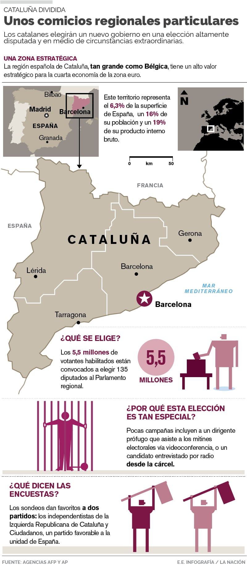 Los sondeos dan favoritos a dos partidos: los independentistas de ERC (Izquierda Republicana de Cataluña), cuyo líder, Oriol Junqueras, está en prisión preventiva como sospechoso de sedición y rebelión, y Ciudadanos, un partido favorable a la unidad de España y primera fuerza opositora en la cámara saliente.