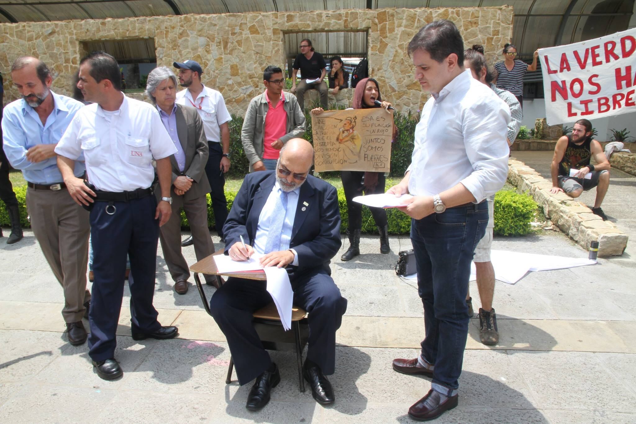 "A pesar de que no compartimos la forma en que procedió el grupo "Asamblea Autónoma toma del Edificio de Ciencias Sociales UNA" al apoderarse del edificio de Ciencias Sociales, provocando entre otras cosas la imposibilidad para 480 estudiantes de realizar la prueba de admisión, y el examen colegiado del curso Matemática General para cerca de 700 estudiantes, esta rectoría se compromete; en aras de llegar a un finiquito del diferendo, a no tomar represalias contra ninguno de los estudiantes que han estado involucrados en este movimiento", dice el texto del acuerdo divulgado por Salom.