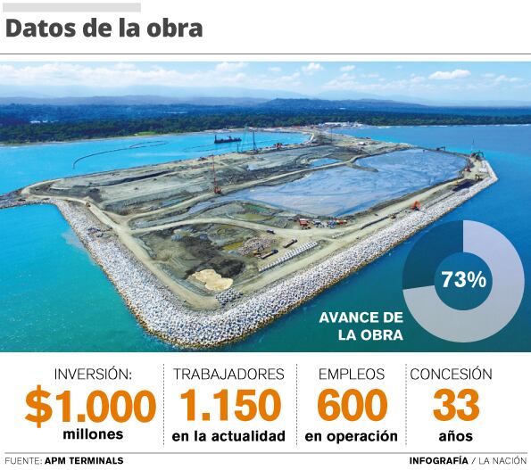 Durante un recorrido con representantes de la prensa, la empresa mostró el avance de la construcción de la terminal portuaria. Los representantes de APM Terminals se mostraron optimistas sobre la posibilidad de entregar el muelle en febrero del 2019, o incluso antes.