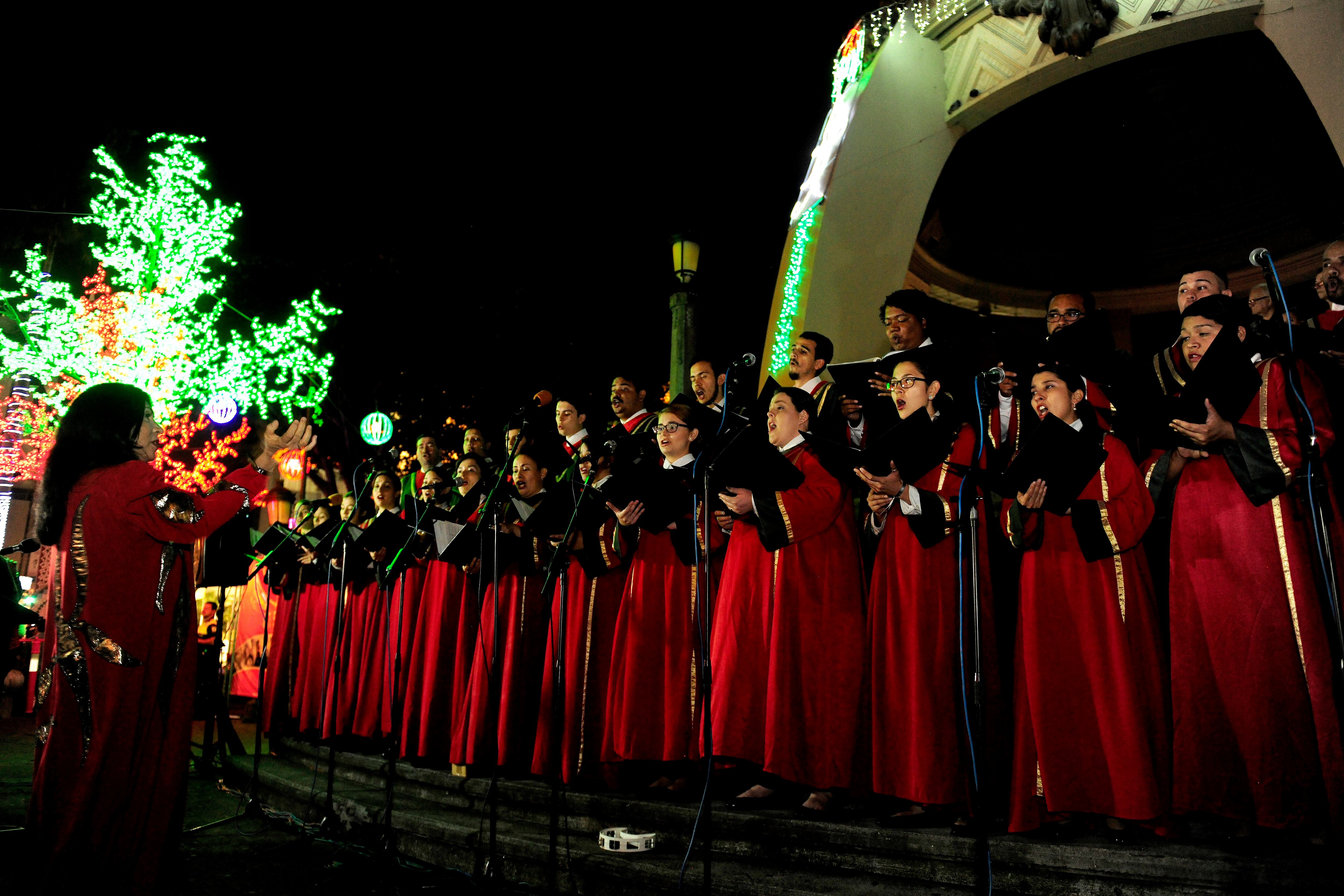 El banderazo de salida fue a las 6 p. m. en el parque Central, en medio de villancicos, interpretados por el Coro de Cámara Surá. Con ello, las calles se encendieron.