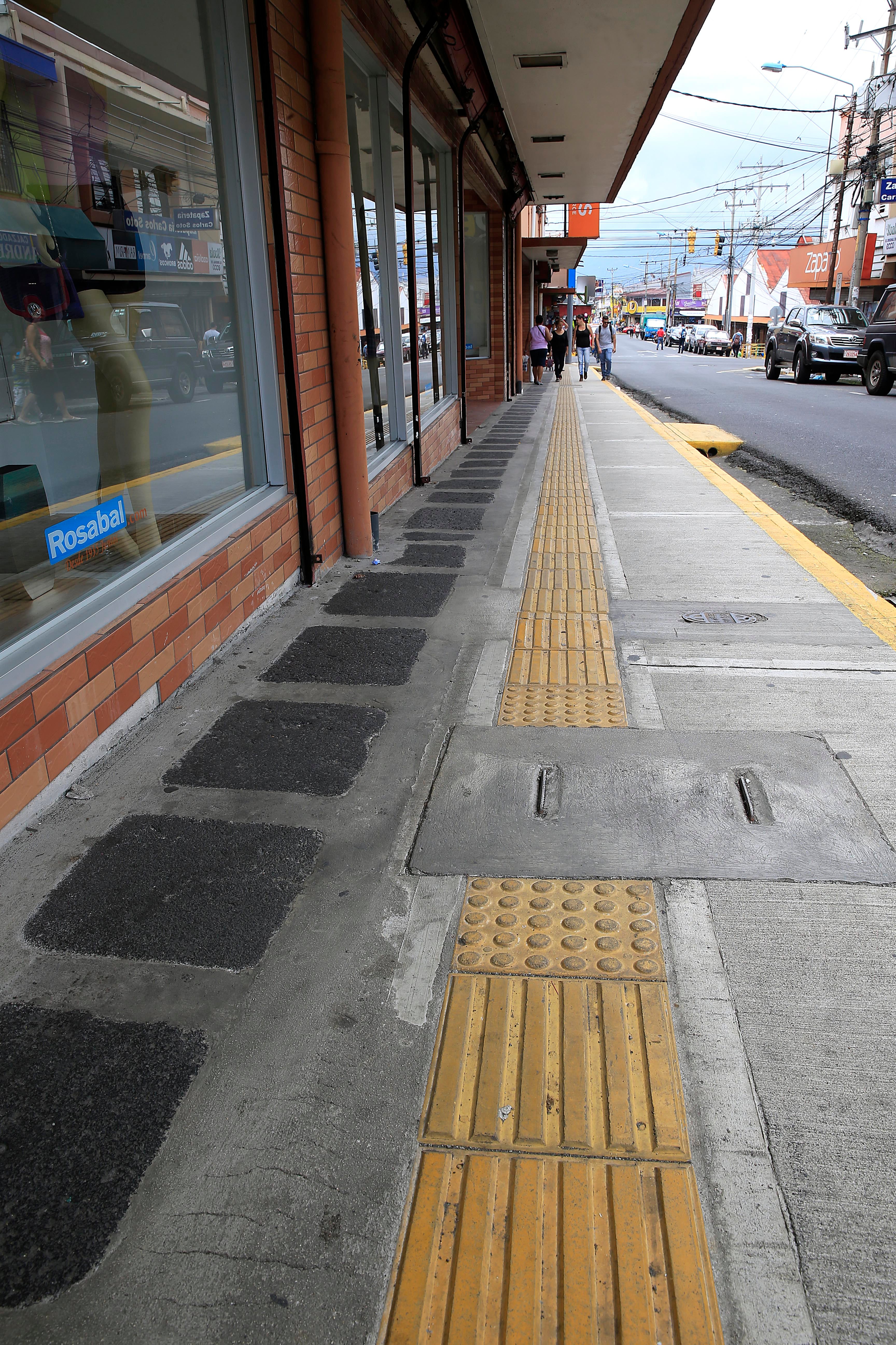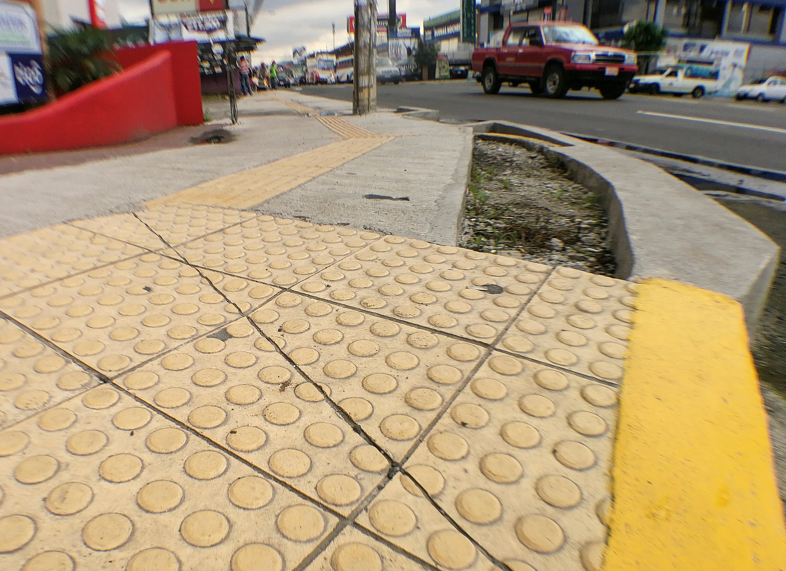 Poco a poco y con proyectos independientes, pero que coincidieron en el tiempo, municipalidades como las de Heredia, San José, Alajuela y Montes de Oca avanzan en la instalación de esas losetas que sirven como guía para los peatones con discapacidad visual.