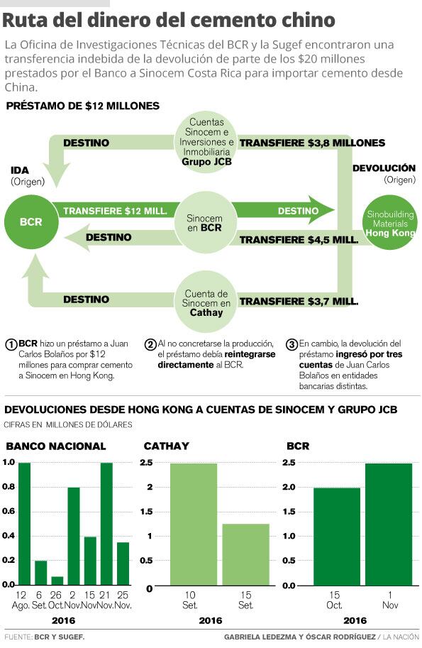 En específico se trata de $12 millones devueltos por el proveedor de Sinocem en Hong Kong los cuales debían reingresar al Banco de manera inmediata, pero Bolaños los mantuvo entre días y semanas en sus cuentas en el BCR, Banco Nacional y Banco Cathay.