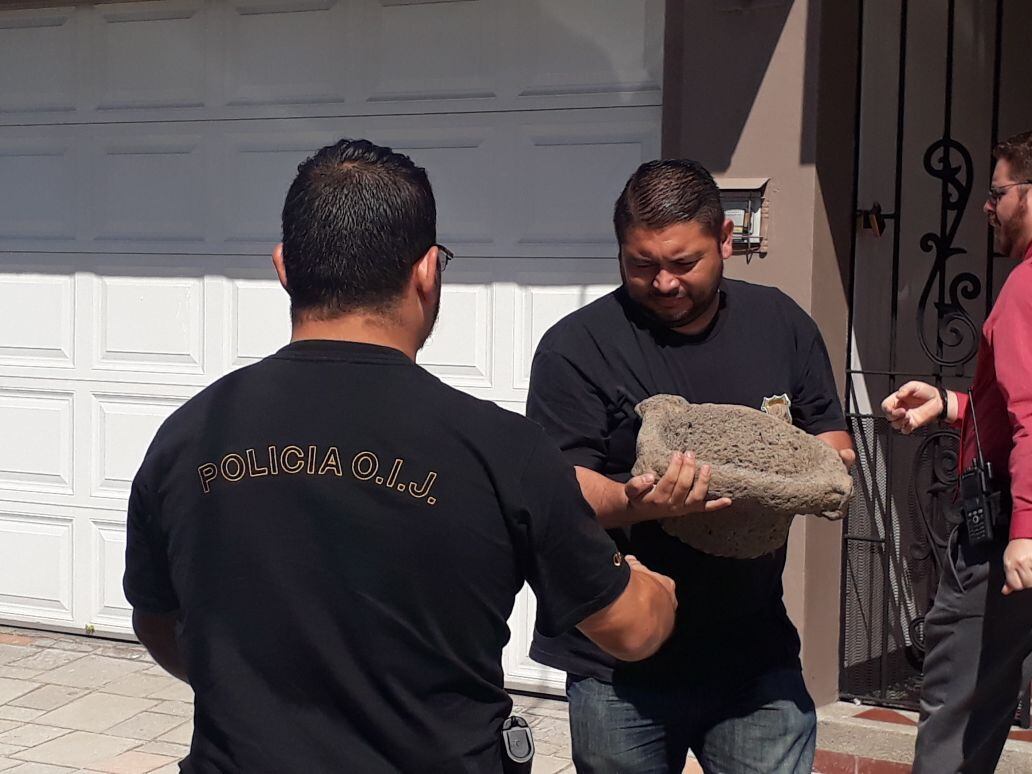Doce objetos de piedra y cerámica elaborados por pueblos indígenas de las vertientes Atlántica y Pacífica, algunos de los cuales datan del periodo comprendido entre los años 300 y 500 después de Cristo, figuran entre las piezas arqueológicas que el OIJ decomisó la mañana de este jueves en la casa del exdiputado liberacionista Víctor Hugo Víquez.