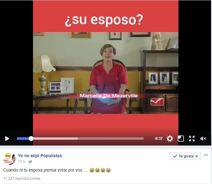 En el audiovisual, De Mezerville le pide a las mujeres su voto por Guevara, quien en ese entonces también era aspirante presidencial del Movimiento Libertario.
